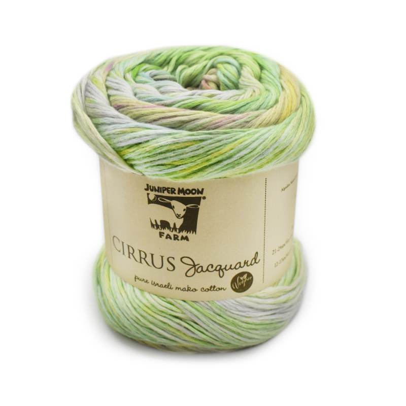 Introducing Juniper Moon Farm's Cirrus Yarn, a luxurious cotton spun with care to evoke the softness and delicacy of clouds drifting across the sky. Crafted from sumptuous mako cotton Cirrus offers unparalleled softness and warmth, making it perfect for creating cozy garments and accessories. With its light-as-air texture and subtle halo, Cirrus adds an ethereal touch to any project, from delicate shawls to elegant sweaters. Each skein is dyed in a Jacquard pattern with colors inspired by nature's most captivating hues, ensuring that every stitch is infused with beauty and grace. Elevate your knitting experience with Juniper Moon Farm's Cirrus Yarn and indulge in the luxury of crafting with the finest fibers. Wrap yourself in the sublime softness of Cirrus yarn and let your creativity soar to new heights.