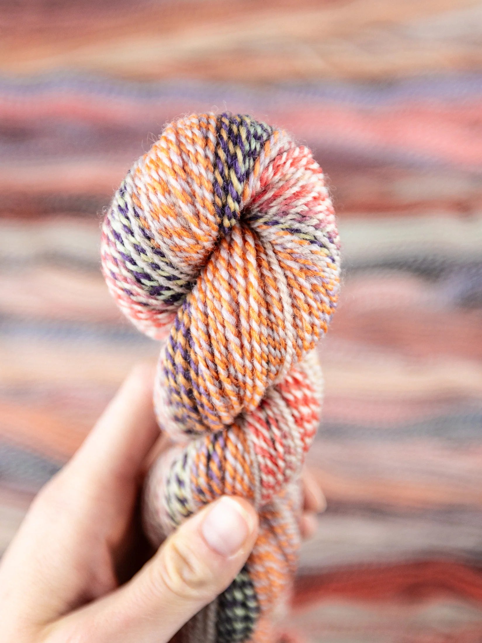 Our Making Tracks yarn is a variegated blend of fine Merino, Targhee, and Corriedale wool from flocks in Idaho to western South Dakota. Scoured and combed at Chargeurs, it is hand-dyed, pin-drafted, spun, and finished at our mill. Proudly 100% American-grown and produced, this non-superwashed, non-mulesed yarn pairs beautifully with solid colors like our Farm Fresh line for stunning colorwork or can be used on its own for gradual color shifts.
